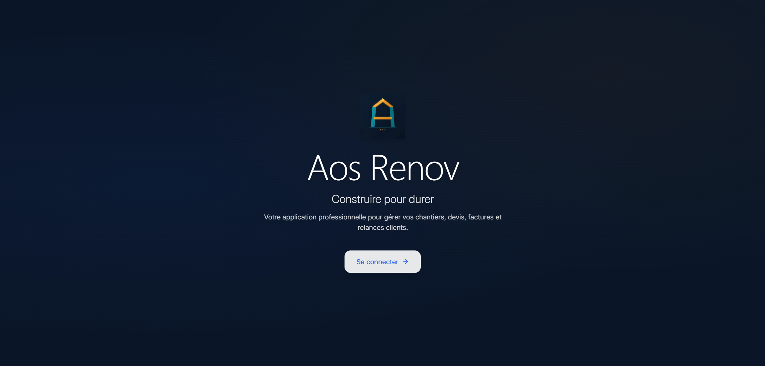 Aos Renov centralise vos devis, factures, relances et planning en un seul endroit. Simple. Rapide. Conçu pour le terrain.